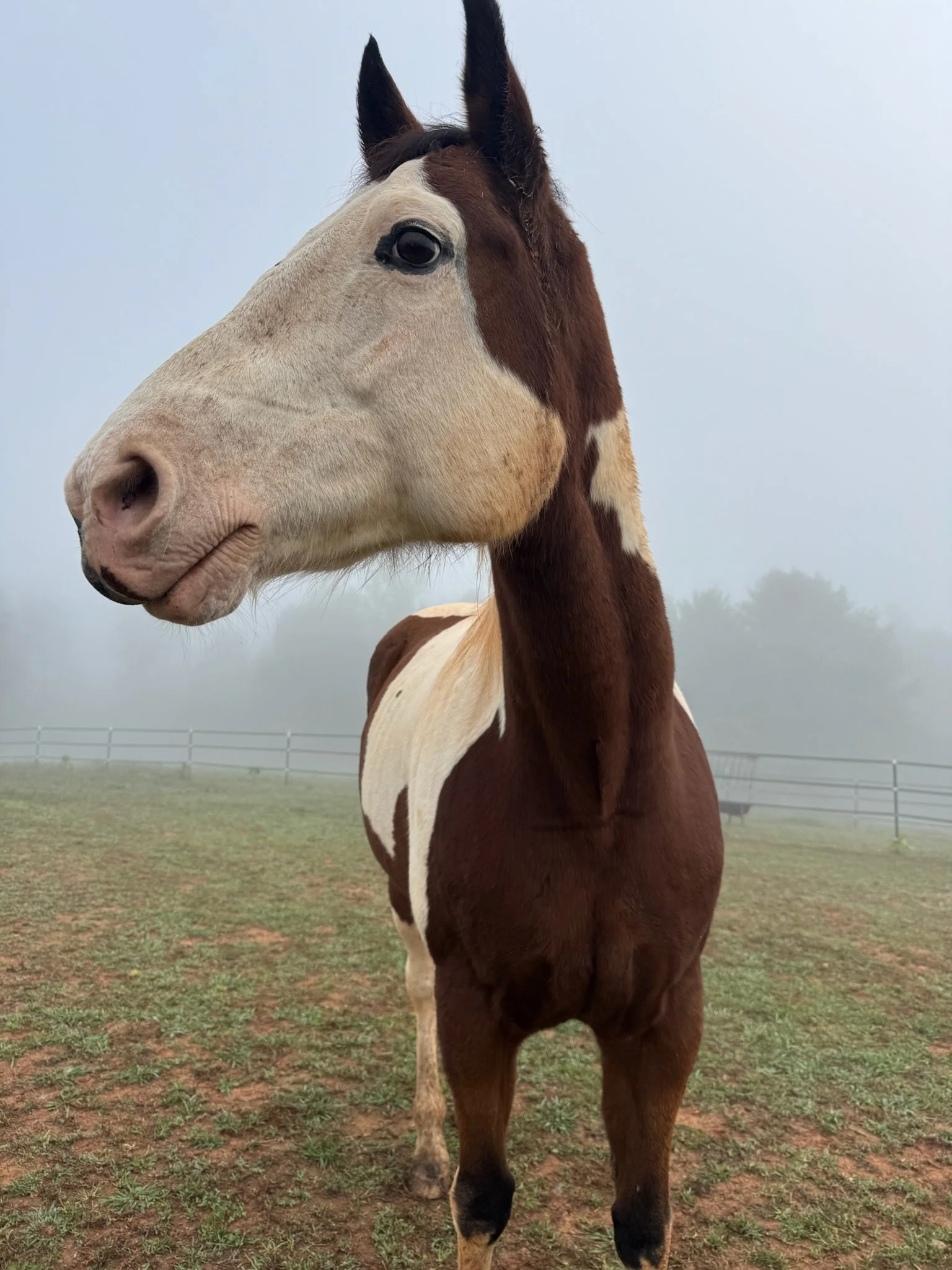 This lovely lady is just that. Lovely. Mystique is a 15 year old, bay paint horse mare. Unfortunately, she is no longer able to be ridden due to navicular changes in both front feet. She is currently easily maintained and very comfortable on mild medication. Mystique is really craving having someone to call her her own again. She was deeply loved by her previous owner. Can you help cheer her up and bring her home? She is fine in a herd, she prefers geldings but is fine with mares. She is a very hard lady, easy upkeep, straight forward temperament, clear on her opinions, willing and really enjoys a good grooming in the sunshine. Mystique is looking for the very best forever home to supply her with hugs, kisses, top notch care, treats, rubs, horsey friends and lots of love! Do you need the sweetest pasture pal to join your herd? Here she is!