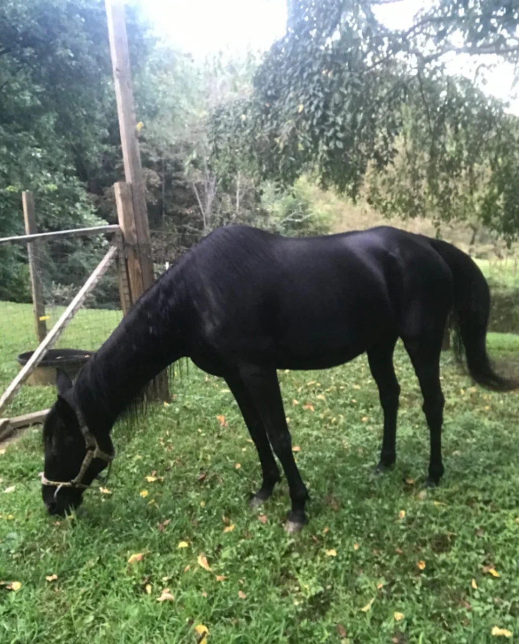 Meet Lady! This sweet and beautiful black quarter horse mare is 23 years old, sound, healthy and safe with kids! She is beginner rider safe for light to medium riding. It is with a heavy heart that her owner, due to serious health problems, is in need of finding Lady her forever home. She is currently in a pasture with 2 miniature donkeys and 2 goats. Lady acts like a mother hen to all of them. Lady will only go to the best of homes. Could that be you?